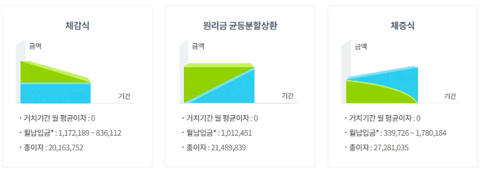 | 원리금 균등 | 원금 균등 | 체증식 | |